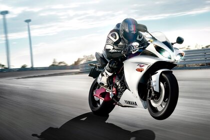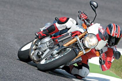मोटरसाइकिल सवार बग़ल में सवारी कर रहा है