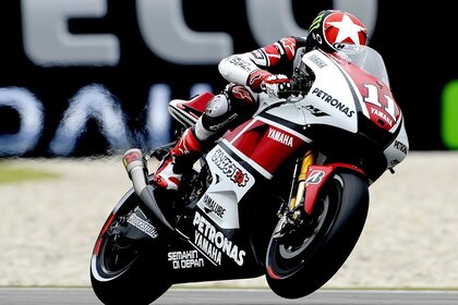 एक उड़ान मोटरसाइकिल जीत के लिए दौड़ रही है