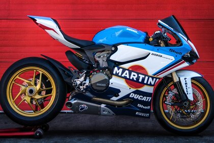 विभिन्न निर्माताओं के शिलालेखों के साथ एक नया मोटरसाइकिल चालक