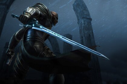 तलवार वाला योद्धा बलिदान की प्रतीक्षा कर रहा है