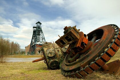 एक पुरानी परित्यक्त औद्योगिक मशीन