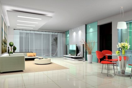 एक उज्ज्वल डिजाइन में एक विशाल कमरा