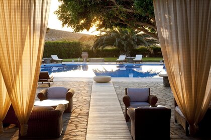 होटल से पूल तक शाम का दृश्य