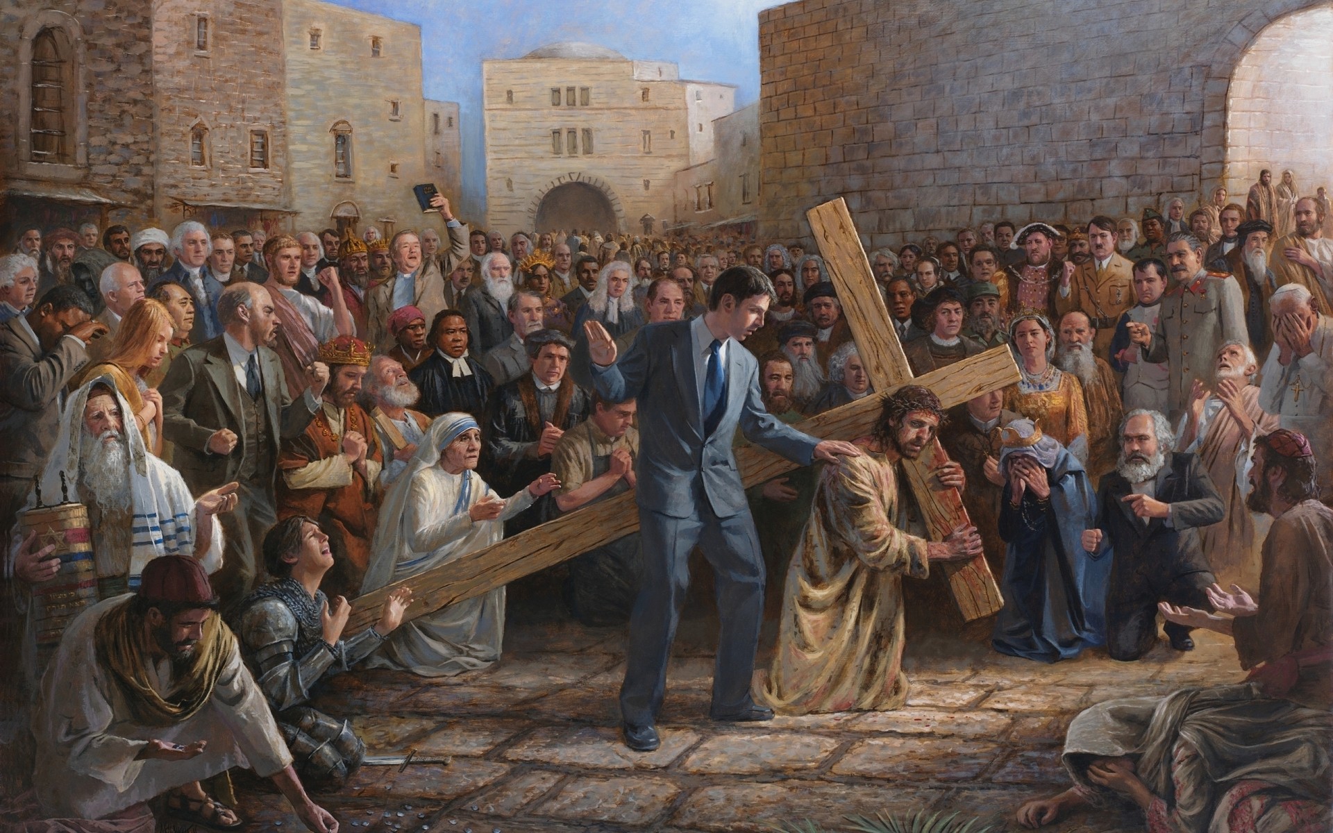 धार्मिक लोगों का एक समूह, एक क्रॉस के साथ एक आदमी - डेस्कटॉप वॉलपेपर
