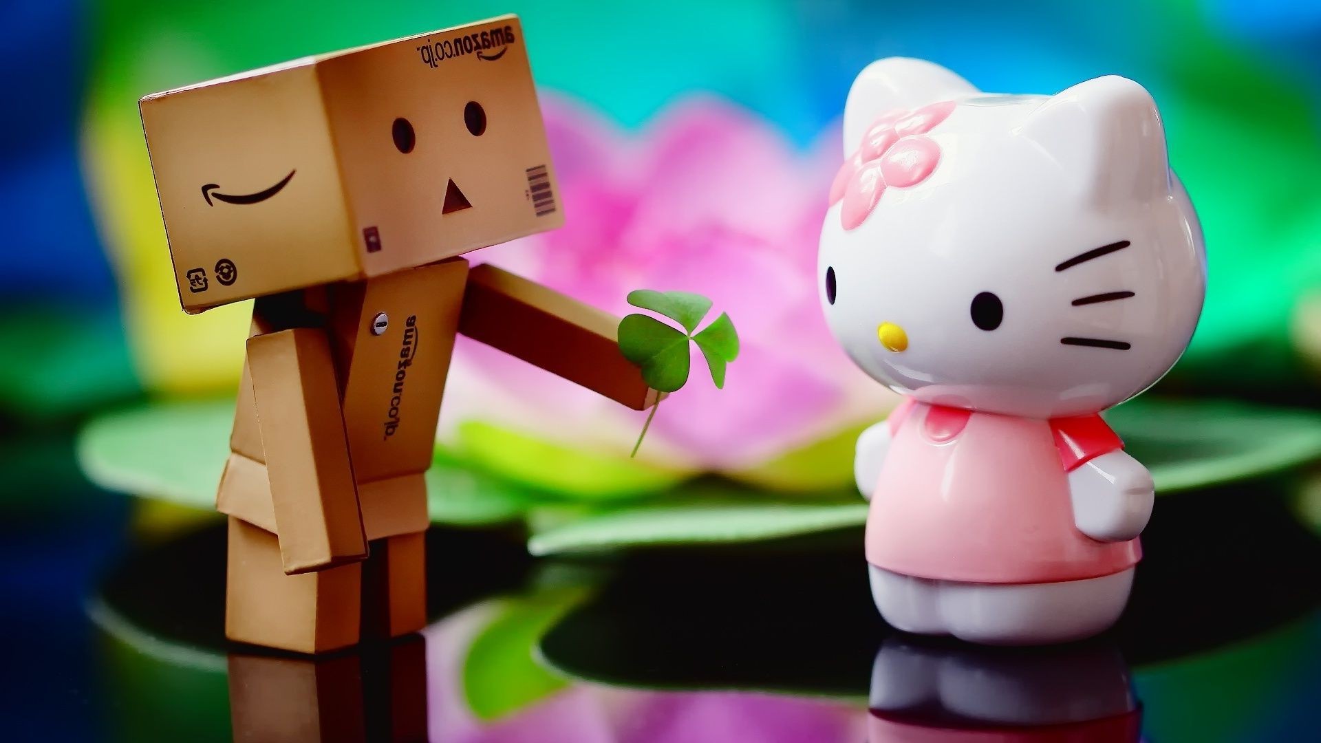 बक्से से एक खिलौना दूसरे खिलौने को तिपतिया घास देता है - डेस्कटॉप वॉलपेपर