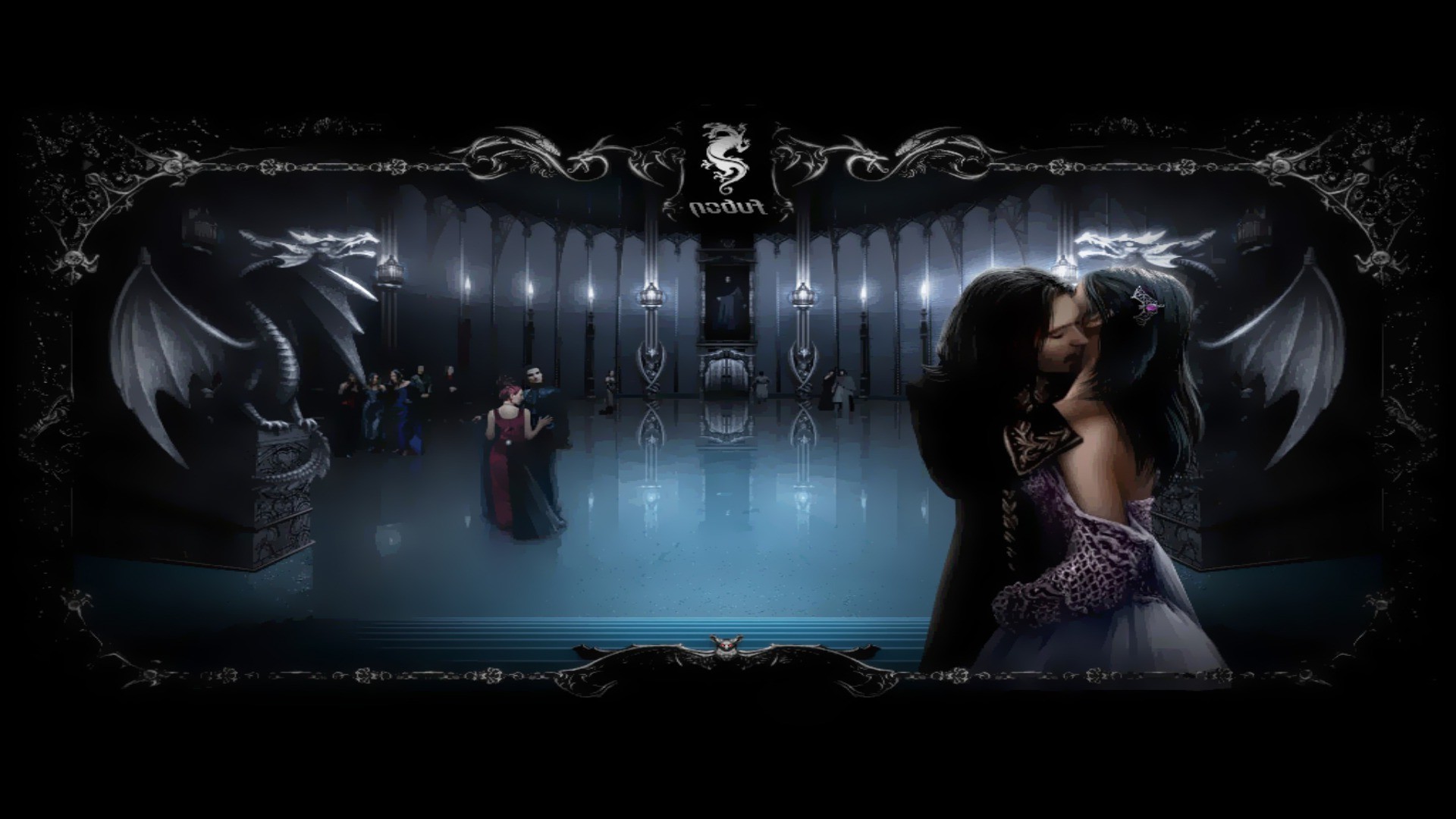 एक ड्रैगन प्रतिमा की पृष्ठभूमि पर युगल चुंबन - डेस्कटॉप वॉलपेपर