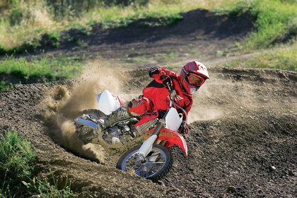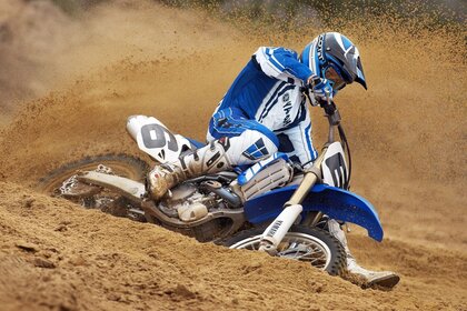 मोटरसाइकिल रेसर रेतीले तत्व के साथ लड़ता है