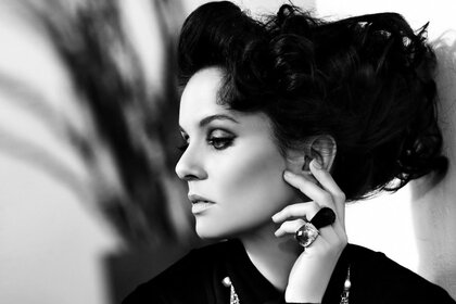 उसकी उंगलियों पर बड़े छल्ले के साथ एक महिला
