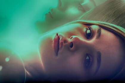 हरे रंग पर सुंदर लड़की का चेहरा