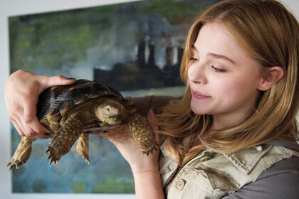 एक काले रंग की पोशाक में च्लोए मोरेट्ज़
