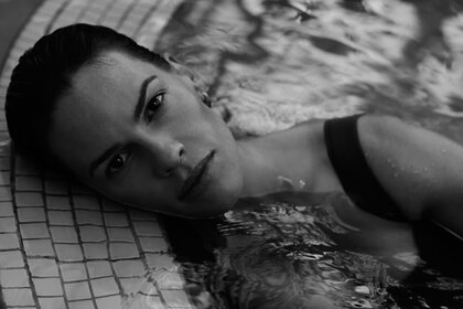पूल में एक लड़की की मोनोक्रोम फोटो