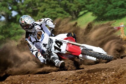 एक मिट्टी के इलाके पर मोटरसाइकिल रेसिंग