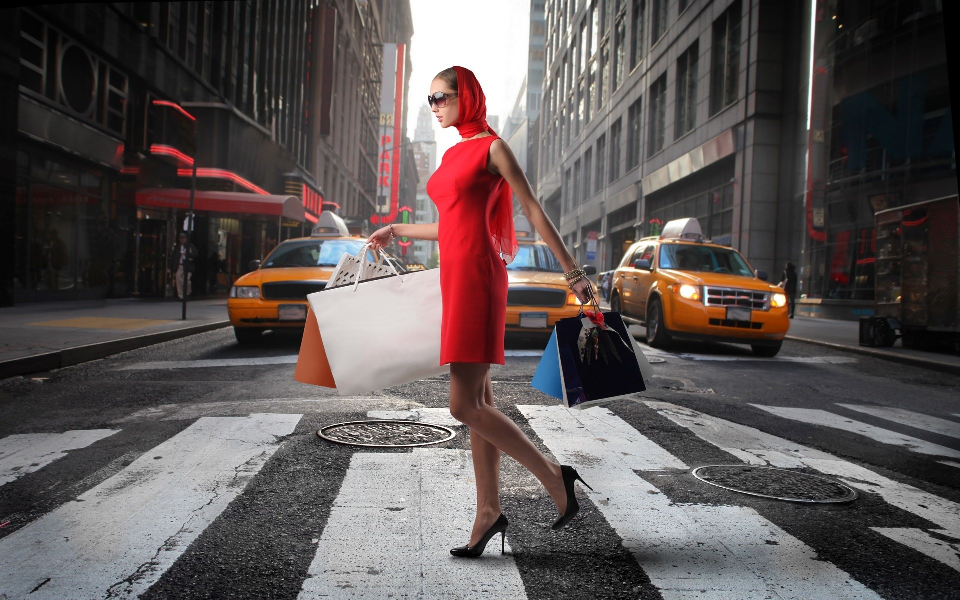 एक फैशनेबल लड़की खरीदारी करने जाती है - अपने फोन के लिए वॉलपेपर