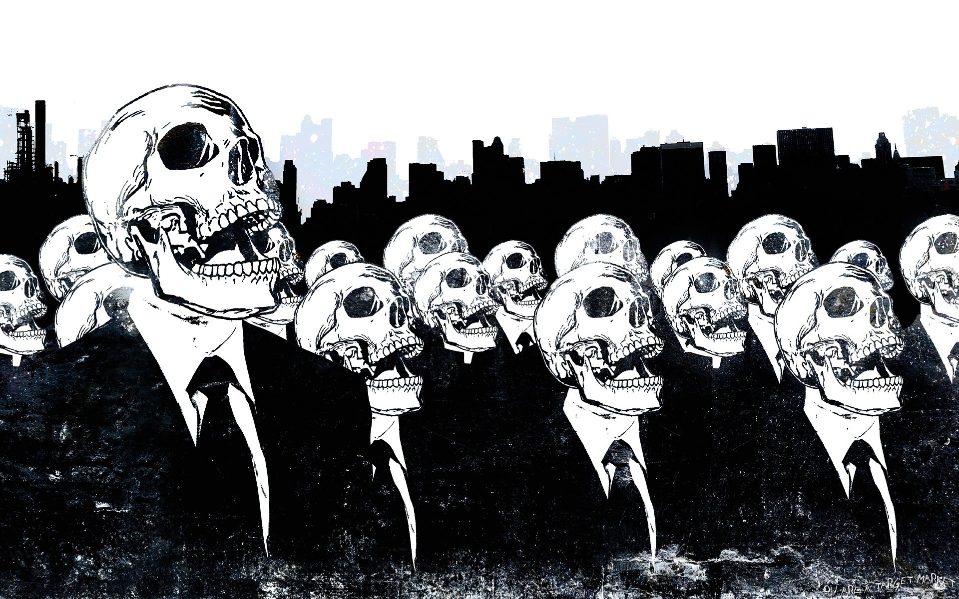 त्वचा के बिना खोपड़ी वाले लोगों की भीड़ - अपने फोन के लिए वॉलपेपर