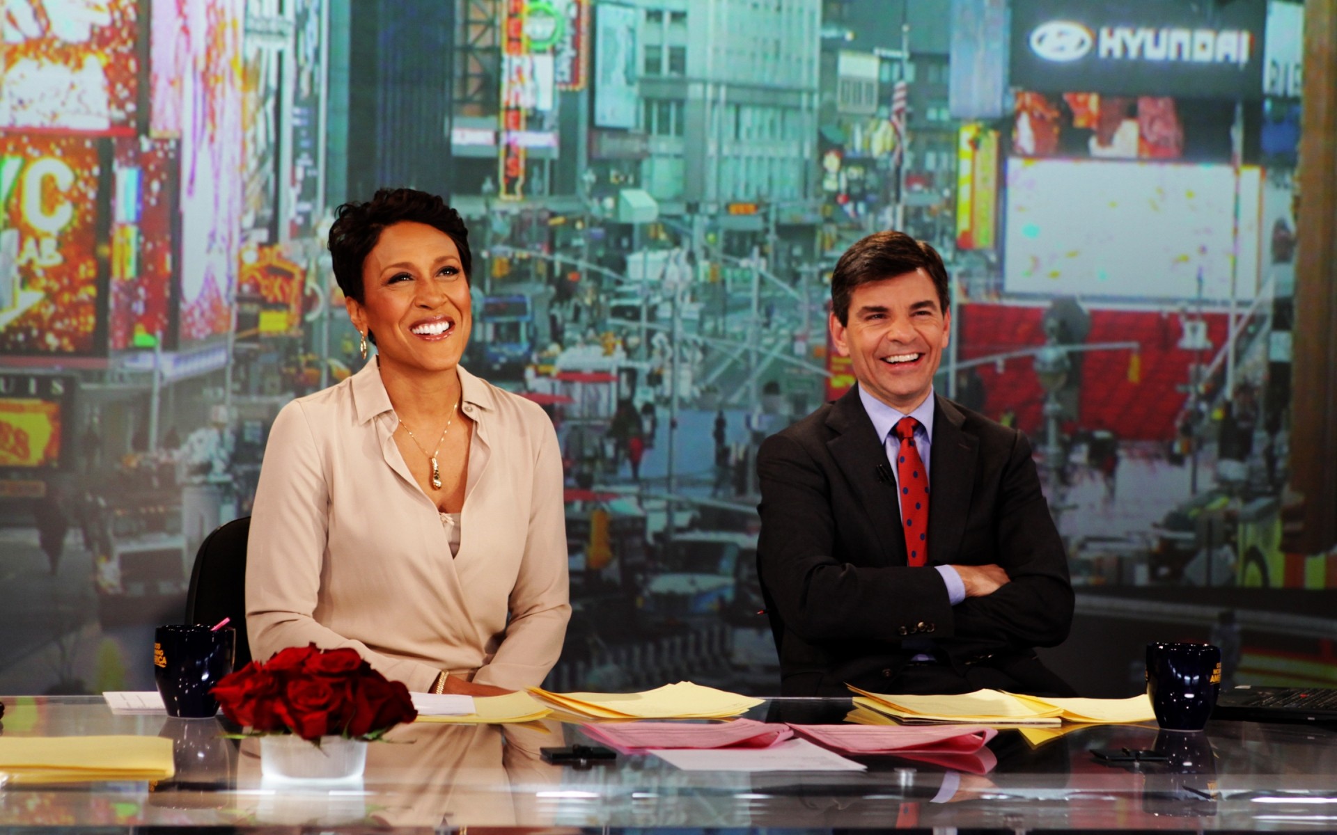 समाचार एंकर मीठे रूप से हंसते हैं - अपने फोन के लिए वॉलपेपर