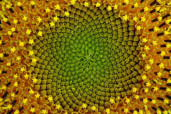 सुंदर उज्ज्वल पीला सूरजमुखी। मैक्रो फोटोग्राफी