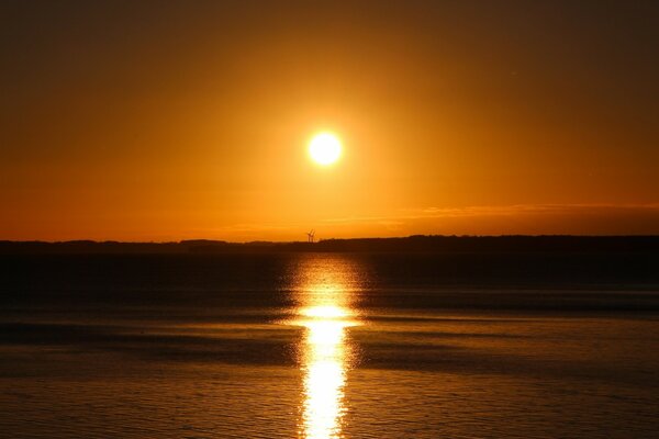 पानी से चमकदार लाल सूर्यास्त