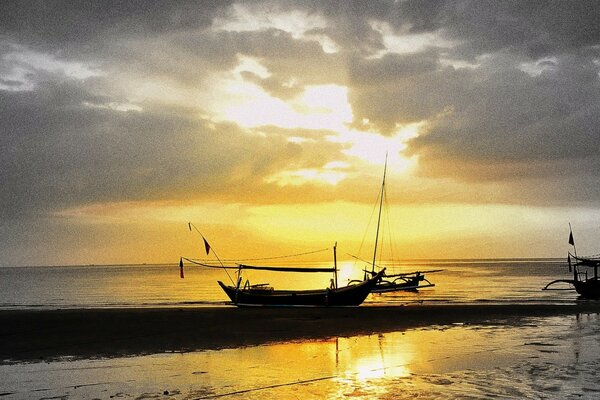 चट्टानी समुद्र तट पर सुंदर सूर्यास्त